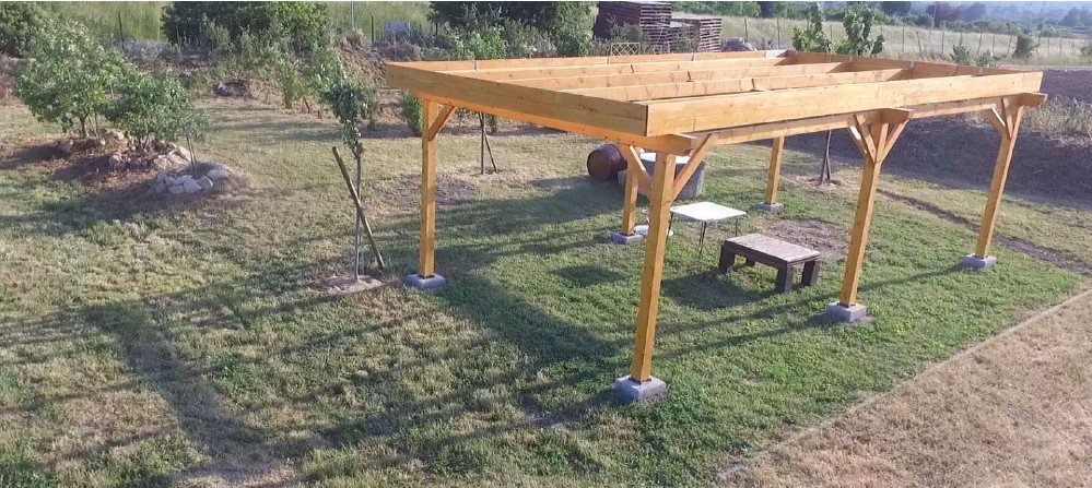 La pergola, sous laquelle les vignerons aiment à se retrouver et à partager une collation ou un repas, est un lieu de convivialté. Elle est située non loin des ruches qui sont protégées par une barrière végétale.
